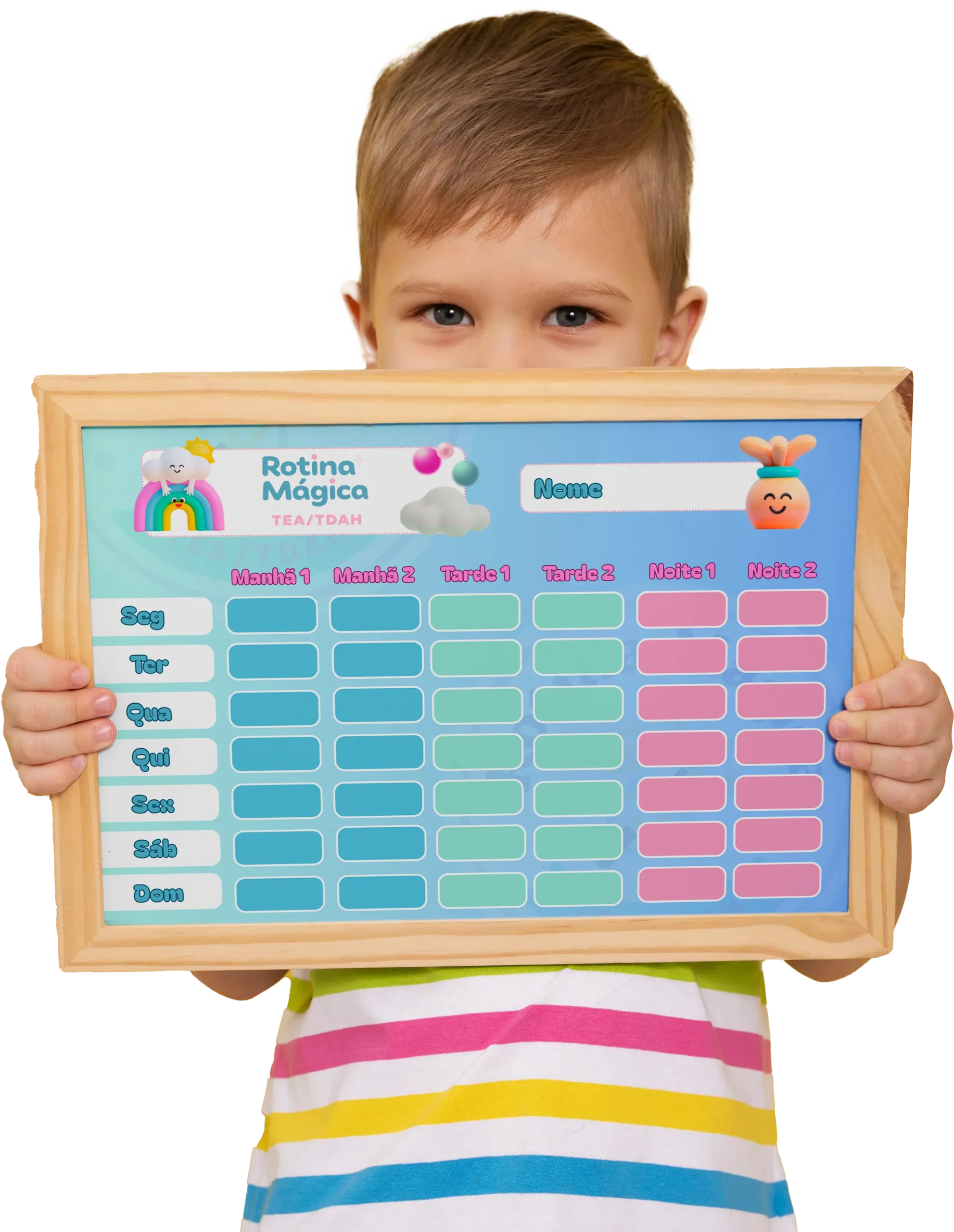 É algo simples, prático e que funciona: Quadros visuais criados especialmente para transformar a rotina da criança em algo previsível e tranquilo.